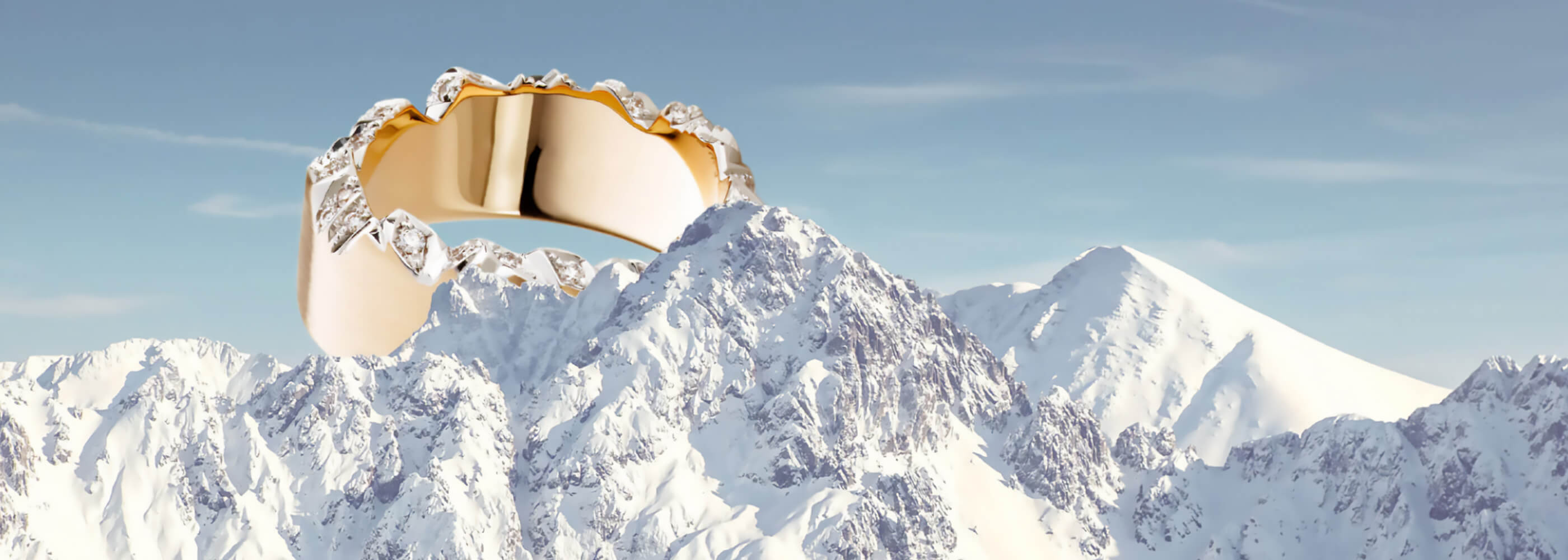 Das Design der exklusiven Ringe, Colliers, Armschmuck und Ohrschmuck der Kollektion Alpen erinnern an ein markantes Bergmassiv im europäischen Hochgebirge. Jedes Schmuckstück wird von einem erfahrenen Goldschmied von Hand gefertigt. Während der Fertigung entsteht die charakteristische Alpenform. Die wundervollen Stücke sind aus Gelbgold, Rotgold, Weißgold oder Platin hergestellt, in die meisten Modelle sind winzige Diamanten eingefasst.